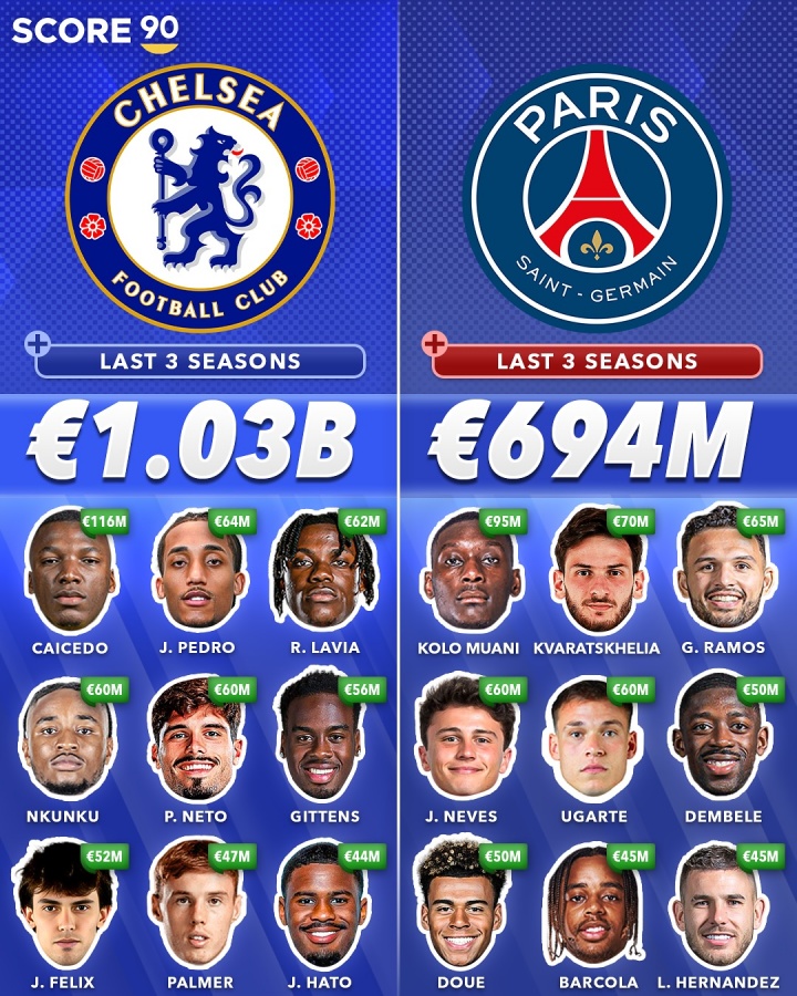 08月05日讯 外媒Score90统计了往日三个赛季各大俱乐部在转会商场的总插足,英超传统BIG6均排在前七,切尔西是独一3年总糜掷超10亿欧的俱乐部。