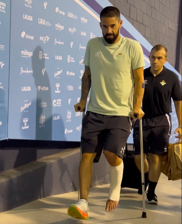 08月10日讯 友谊赛贝蒂斯1-3不敌马拉加的比赛中,伊斯科遭拉鲁比亚背后犀利放倒,赛后被拍到拄拐离开球场。