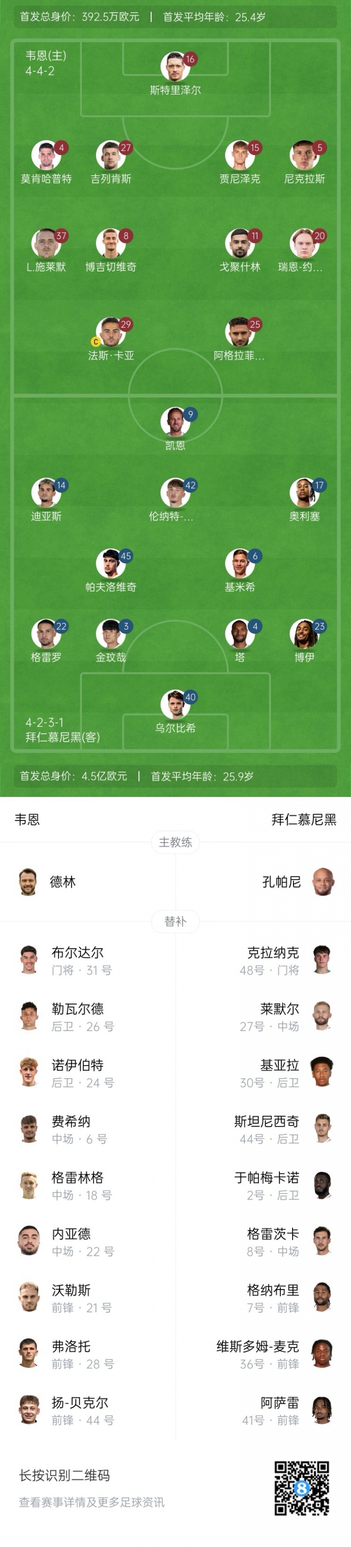 8月28日讯 北京期间02:45,德国杯第1轮,拜仁慕尼黑对阵德丙联球队韦恩,赛前首发威望出炉!