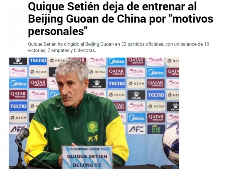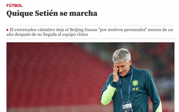 10月6日讯 日前,西班牙媒体《马卡报》、《全国体育报》报说念了北京国安主帅塞蒂恩因“个东说念主及家庭原因”离职的音问。