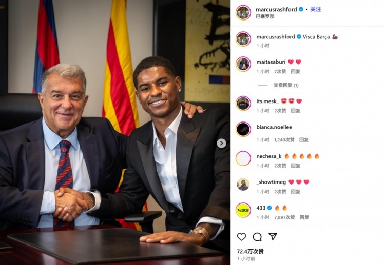7月24日讯 巴萨依然官宣引进曼联时尚拉什福德,后者也社媒晒照缅想。