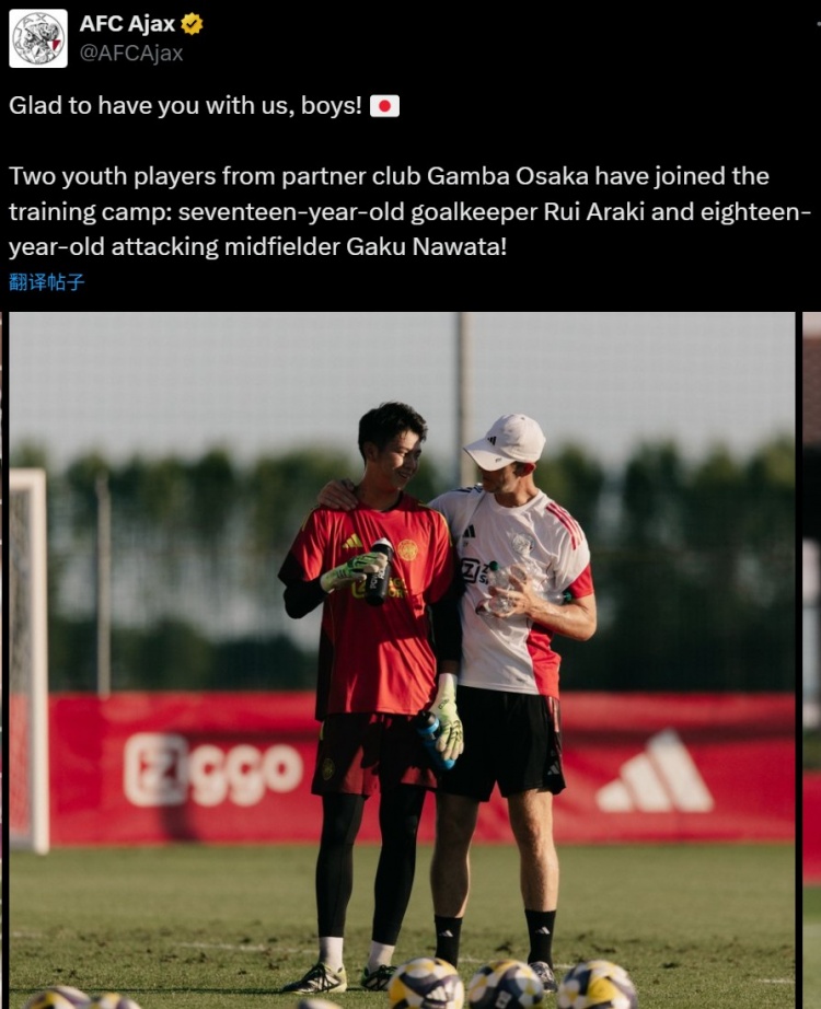 7月24日讯 阿贾克斯官方告示,两名日今年青球员加入季前赛端庄营。