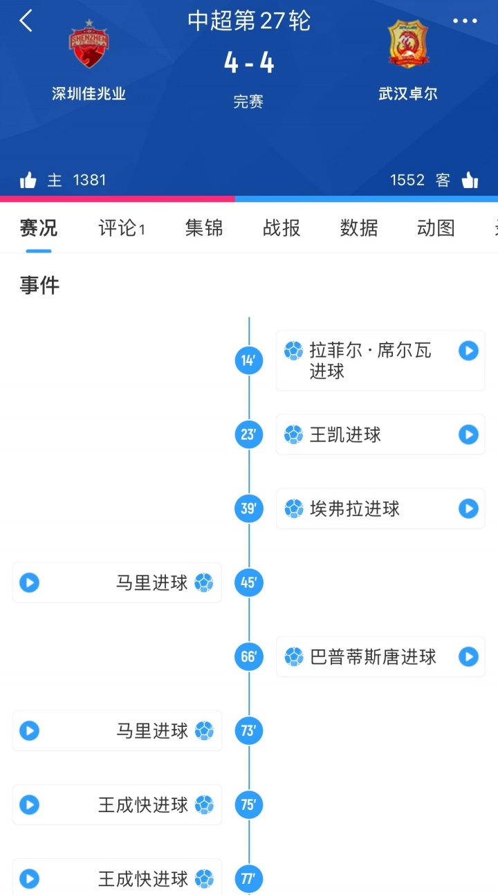 2019年深圳吉兆业4-4武汉卓尔比赛集锦