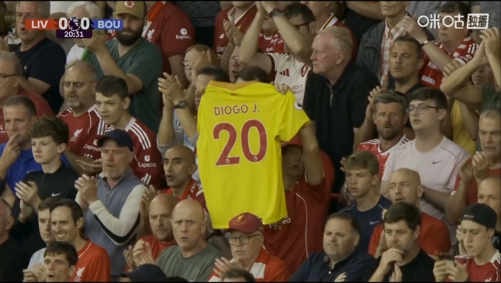 08月16日讯 利物浦vs伯恩茅斯第20分钟,安菲尔德响起掌声,球迷们饱读掌问候若塔。