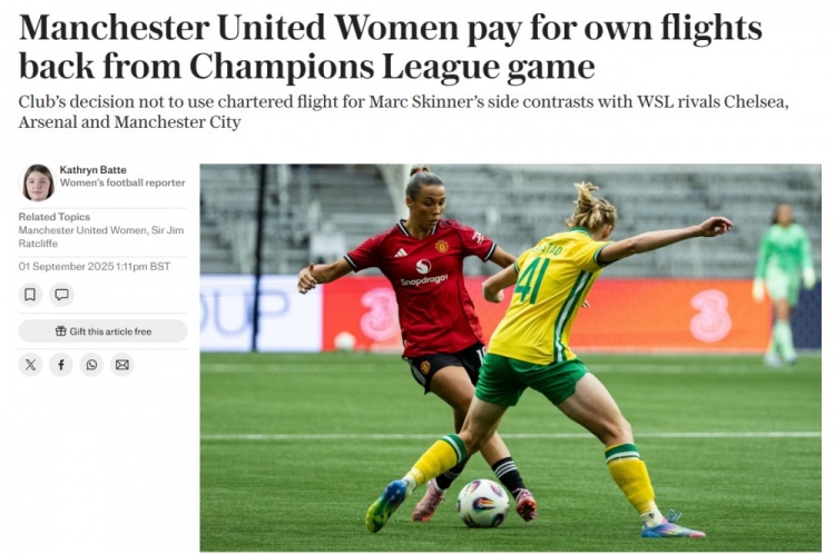 9月1日讯 据《电讯报》报谈,曼联俱乐部未安排包机,让自家女足私费购买欧冠客场返程机票。