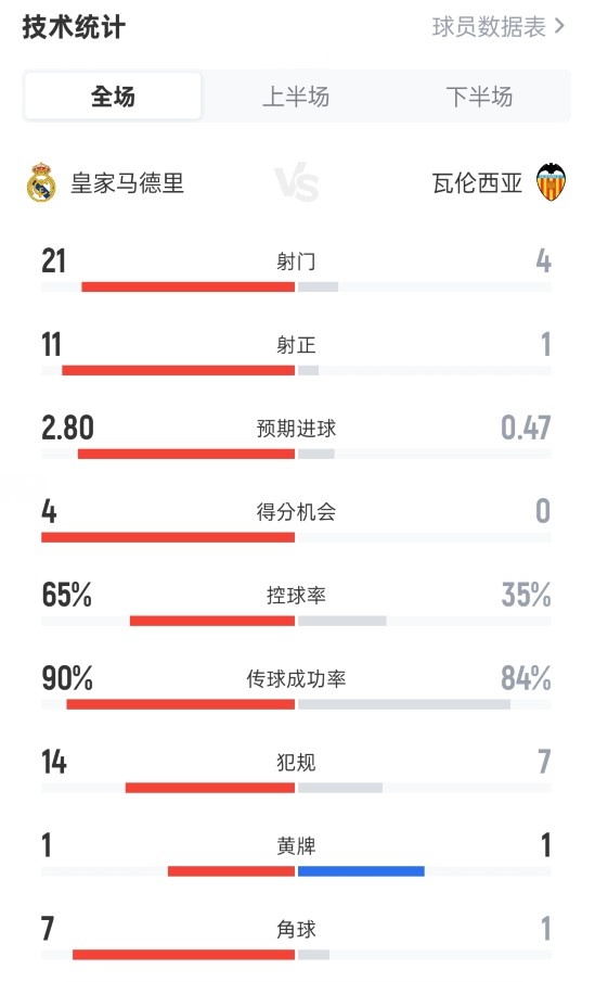 你的位置:葡超直播 > 意甲联赛 > 皇马4-0瓦伦全场数据:射门21-4,射正11-1,控球率65%-35%