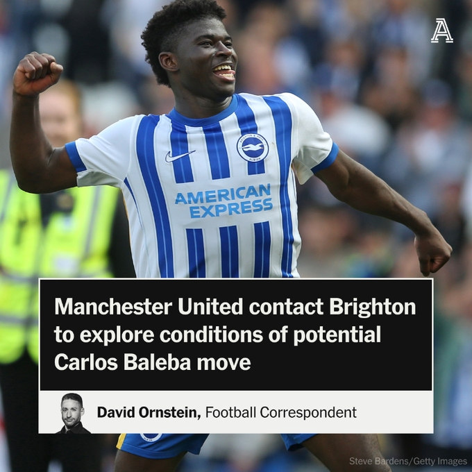 【干系新闻】TA:曼联已接头21岁巴莱巴情况,但布莱顿不思卖