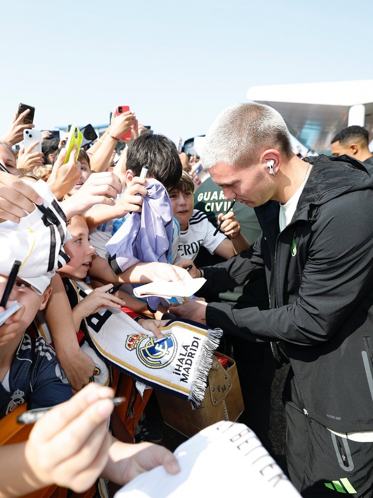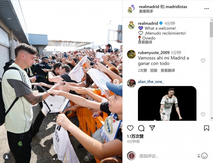 皇马球员们还是抵达奥维耶多,准备进入这场比赛,他们受到当地球迷的好坏接待,皇马官方社媒晒出球员们签名的像片。