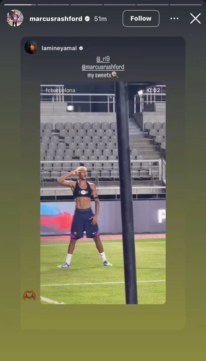 07月30日讯 亚马尔本日在社媒上晒视频,我方考验破门后作念出拉什福德经典庆祝四肢:手指太阳穴,并@拉什福德。