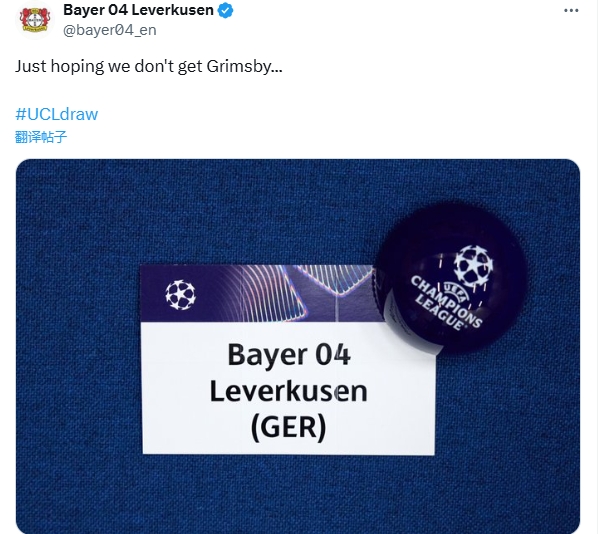 勒沃库森社媒嘲谑:“但愿咱们不要抽到格林斯比。”