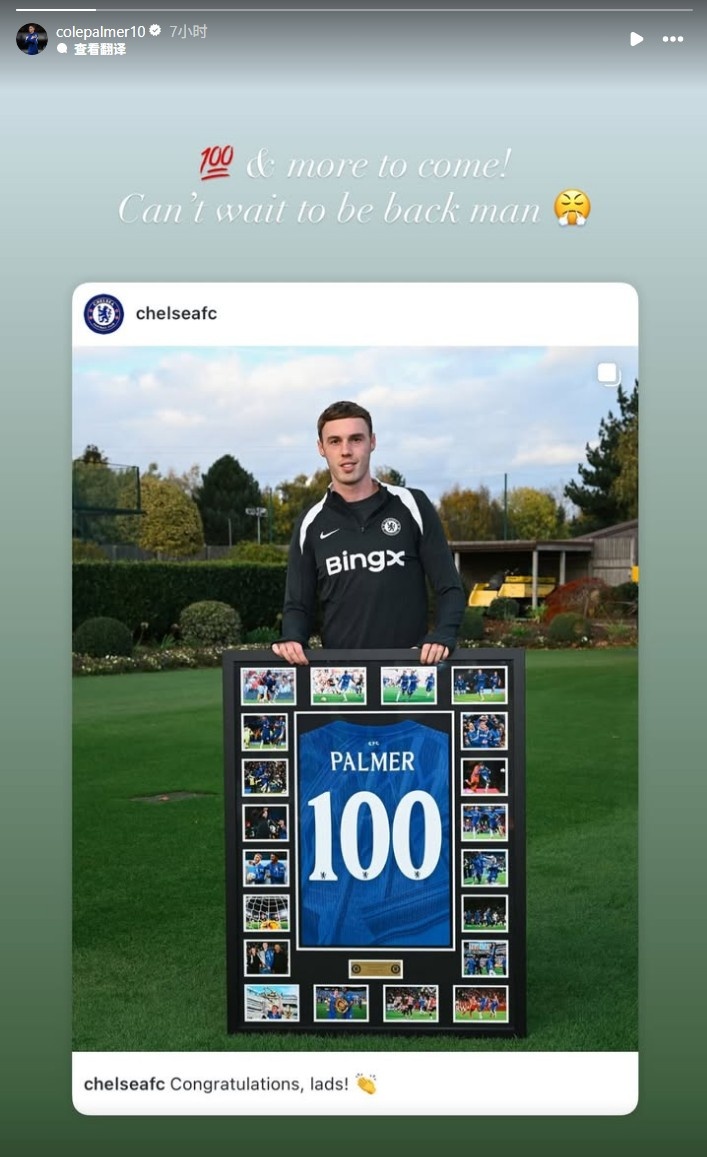 帕尔默写说念:“100场!接下来还有更多!哥们我一经等不足要总结赛场了!”