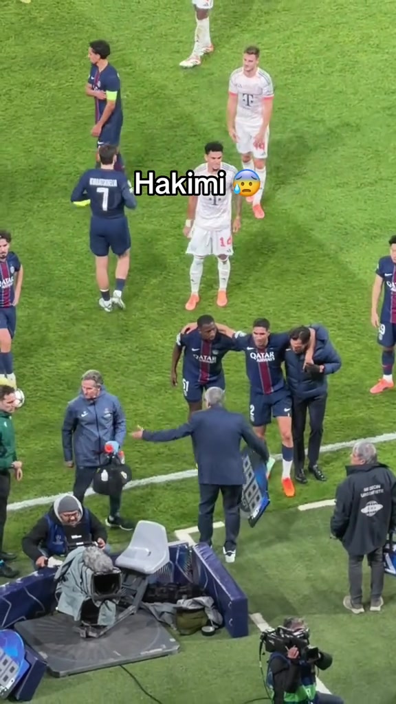 在巴黎对阵拜仁的比赛中,阿什拉夫因小腿受伤被动离场。