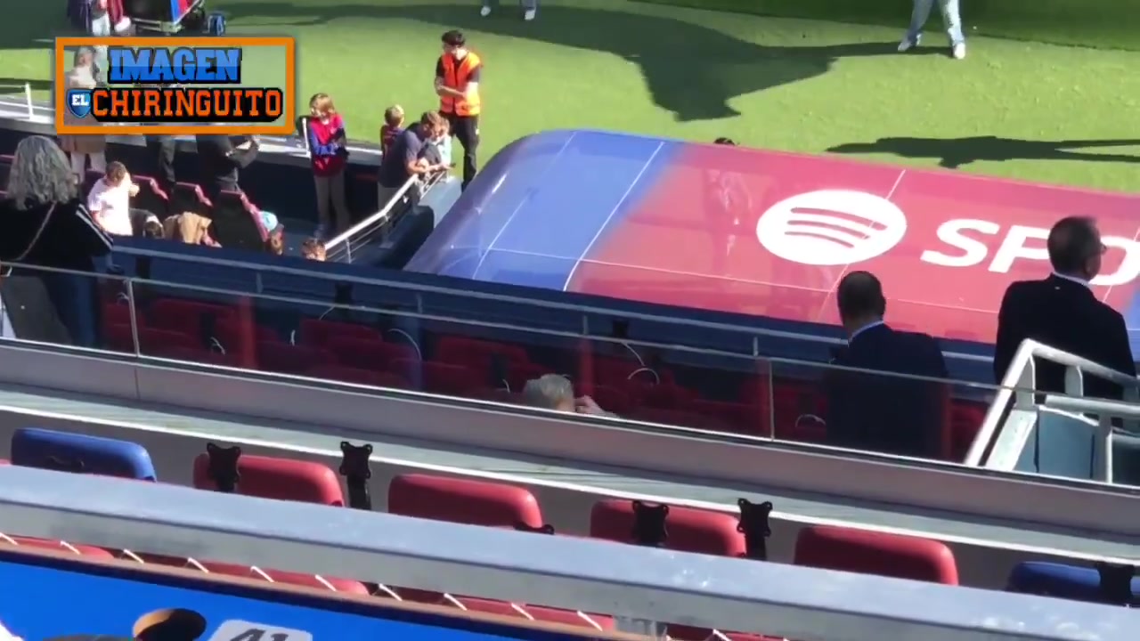 巴萨当天在诺坎普球场进行公开考试,俱乐部主席拉波尔塔来到现场。