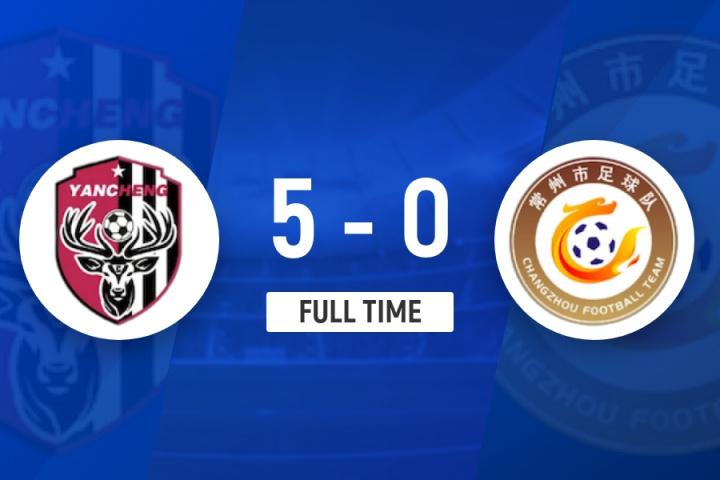 盐城4球向上!郑文煊双响!第85分钟,童心右路突破下底传中,郑文煊包抄捅射破门,盐城4-0常州!↓