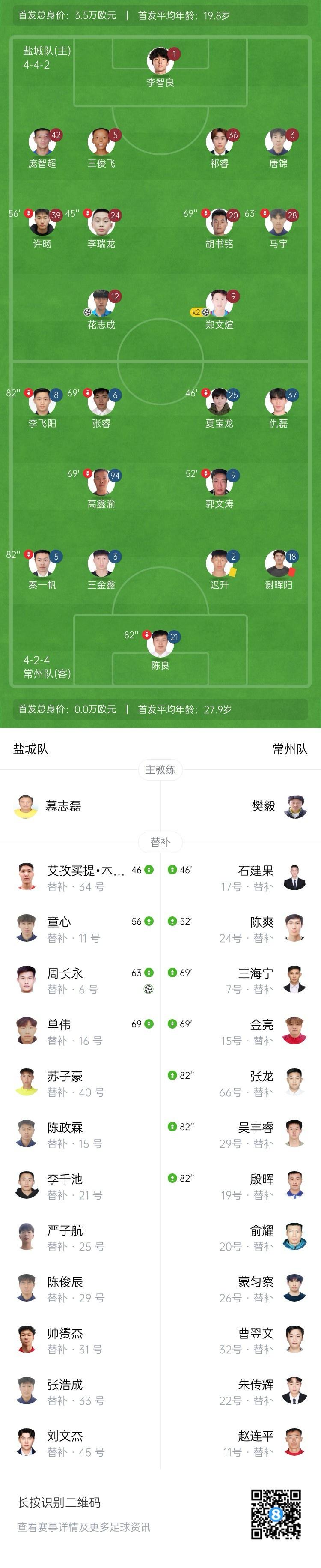 盐城5球向上!第90+3分钟,常州后场凝视派别掀开,花志成外围一记贴地斩破门,盐城5-0常州!↓